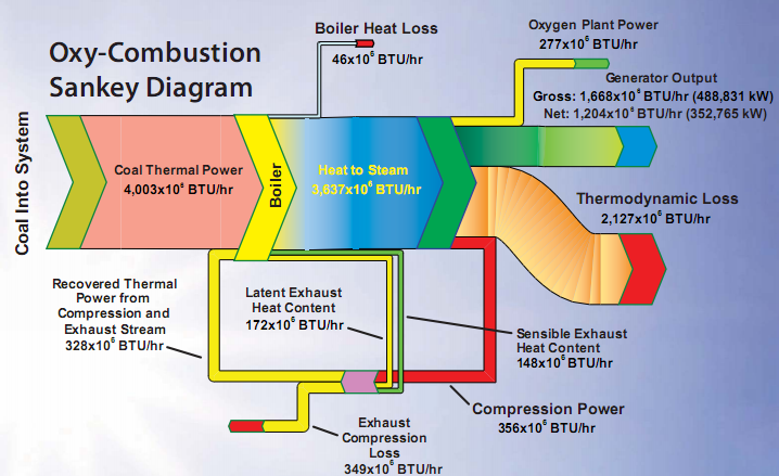 OxyFuelcombustion is an emissions abatement solution wherein coal (as well as other fossil fuels) is burned/combusted in the presence of 100% oxygen instead of "atmospheric" air which contains 20.95% O2 (by volume) along with;